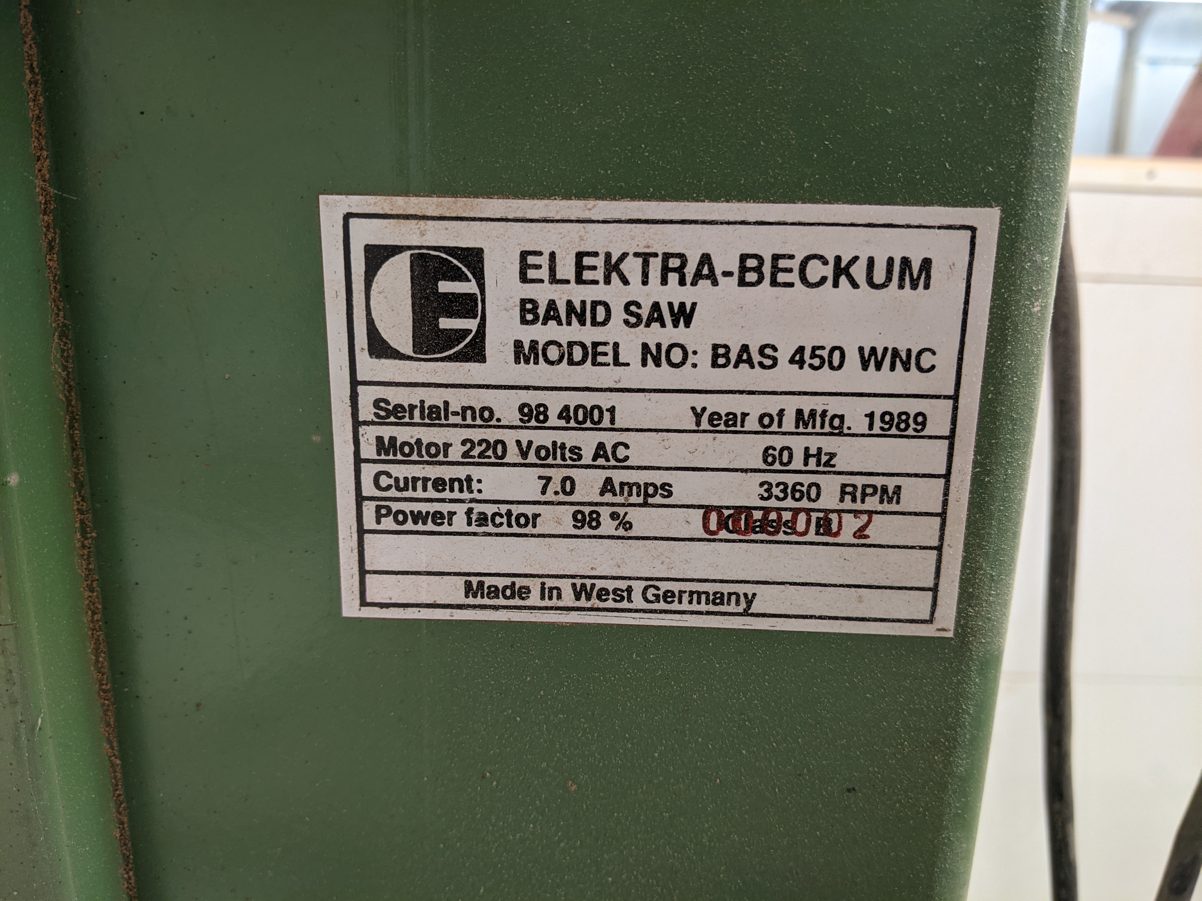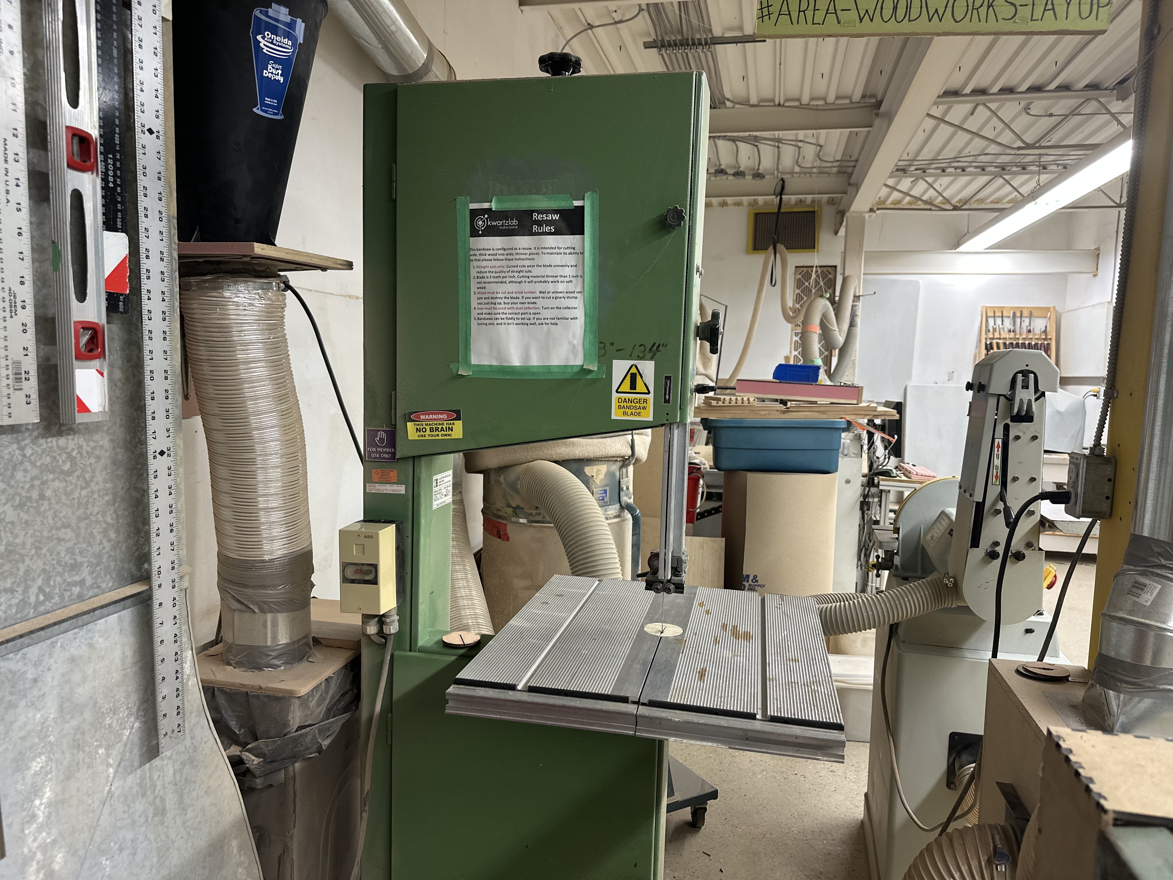 This is the larger of the two bandsaws in the woodshop, which should be used ONLY for resawing.